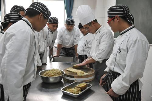 (二)技能学习:主要学习烹饪基本功(包含刀工、勺工)、中餐烹调常用的炒、爆、熘、扒、烧、烩等30种烹调方法,主要涉及热菜80个品种,凉菜45个品种,冷拼基本功及高档花色拼盘6个品种,可参与第二课堂学习雕刻技术等其它选修课技能。